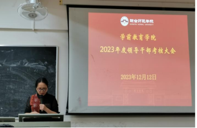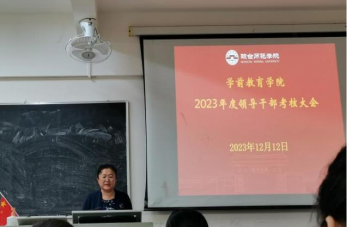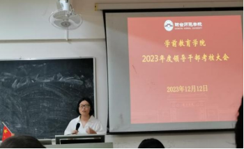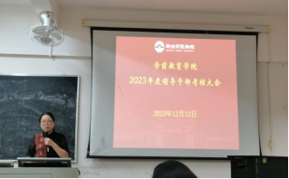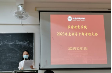12月12日下午,ok138电子官方网站在府城校区电教中心四楼教室召开2023年度领导干部考核大会,学院党委书记杜文忠主持会议,学院领导班子、全体教职工及学校组织部有关人员参加会议。