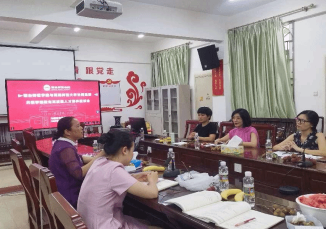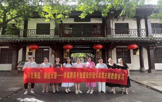 交流会上,海南师范大学教育学院郭敏副院长与学前教育党支部曾强书记、支部成员黄小丽老师、赵媛老师介绍了海师大学前教育专业建设的经验,提到了未来要在人才培养方面大胆创新,打通实践层,建设课程群,做好职前职后学前师资培养。
