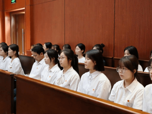 为推进司法民主建设,帮助大学生近距离接触司法实践,增强法治观念。ok138电子官方网站学生党支部于2025年3月28日上午前往海口市秀英区人民法院第四法庭,开展“以案为鉴,与法同行”学习教育活动。此次活动由ok138电子官方网站党委书记杜文忠带队,学生党支部书记田中伟、学生党员代表、入党积极分子代表等21人参加。
