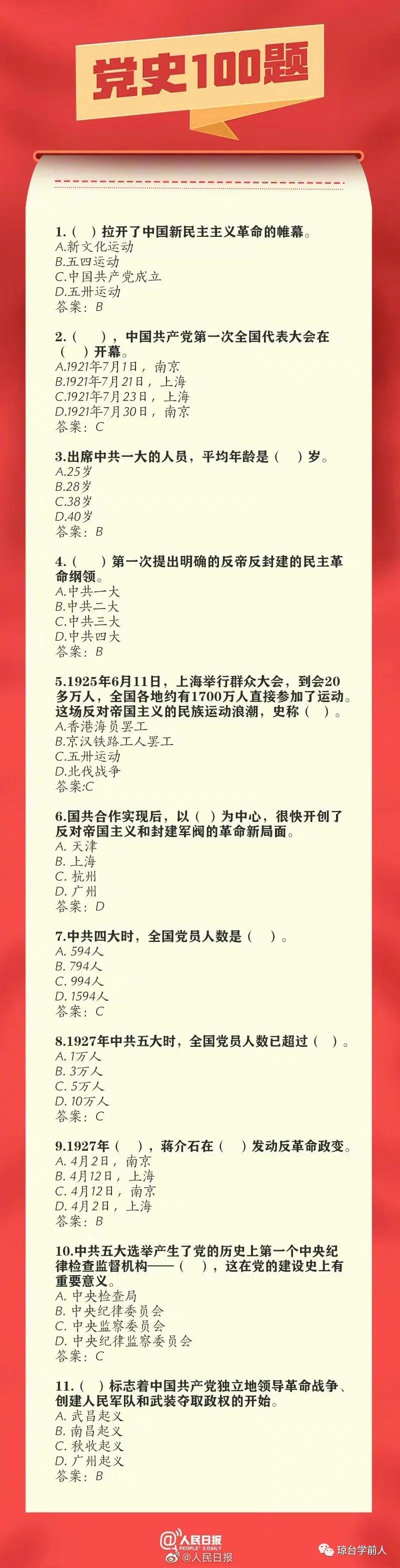 【党史知识库】速学 这些党史知识题你都会吗