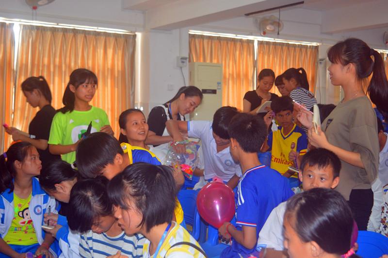 为了以实际行动响应校党委开展的“两学一做”学习教育,培养一名合格党员应有的服务意识和人文情感,2016年5月25日,幼儿师范学院党总支组织学生党员和入党积极分子约20人赴海口市特殊教育学校开展“快乐•六一”爱心传递活动,并提前给特殊学校的小朋友送去节日的问候和关心,与小朋友互动交流,让学生党员从另一个角度体验生命的厚重和珍贵,感受爱与被爱的力量。活动中,学生党员和入党积极分子给小朋友送上了由学院手工社团为她们准备的小礼物,给小朋友们表演了励志手语舞,开展了背靠背夹气球小游戏,游戏结束后还送给小朋友水果、饼干、果冻等食品,最后与特殊学校的师生们合影留念。