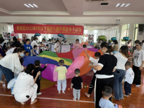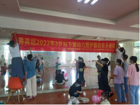 为深入贯彻落实省、市《关于促进 3 岁以下婴幼儿照护服务发展的实施意见》,切实提升秀英区婴幼儿照护服务水平,逐步满足群众对婴幼儿照护服务的需求,同时更好地发挥琼台师范学院早期教育专业办学的辐射作用,切实抓好社区、家庭、高校“三位一体”的教育共同体,进而给辖区居民送上优质的早期教育服务,由秀英区卫生健康委员会主办,计生协会、海秀镇政府与琼台师范学院协办的“照护未来,托起希望”的照护服务亲子活动于2022年11月13日上午9:30在海秀镇人民政府的文化馆开展。出席本次活动的领导有秀英区卫生健康委副主任黎红娇、海秀镇政府副镇长乔琪、琼台师范学院早期教育专业负责人顾丽梅副教授。活动的组织者及协助者为琼台ok138电子官方网站2020级与2021级早期教育专业13名学生。