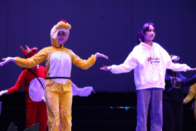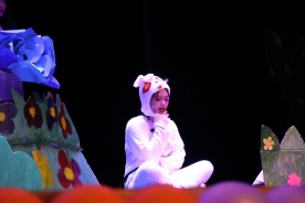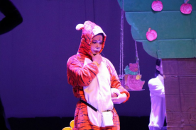 本次文艺演出共有《动物职业介绍所》《聪明小鸡,笨小狼》《老虎拜师》《牙细菌大作战》《有朋友真好》五个剧目。不同的剧目讲述着不同的故事,不同的故事蕴含着不同的道理,为同学们带来一场生动形象的表演。