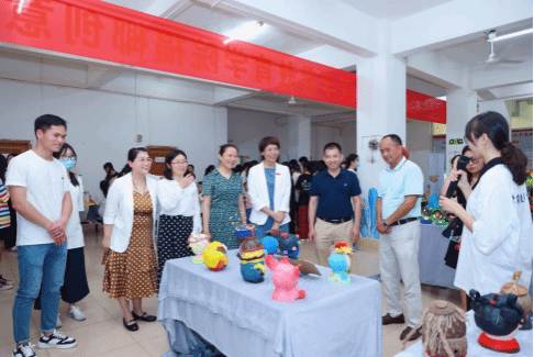 观展中,陈晖阳副书记充分肯定了学生们踏实学习、努力创新的学习态度,展出的作品琳琅满目,各有特色。她指出,学院在提升专业特色时,需发挥专业能力,提升学生综合素养,实践教学活动灵活开展起来,多激励学生参与,激发学生们的积极性、自信心,让学生在活动中内心得到满足,找到成就感,收获作品的同时妥善收藏展示,一级一级学生间相互影响,相互促进,以此来坚定学生们的学习方向和目标。她表示,此类活动切合了我们海南本土文化元素,此类实践活动要多开展,让学生们多锻炼,做成常态化实践教学。
