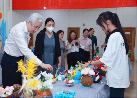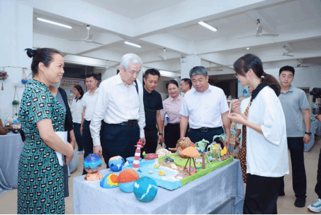 随后,银海强副校长带领国培计划考核专家组莅临展厅参观。他表示。展览中学生们椰壳作品种类丰富、形式多样,但是主题形式可以与现代信息技术相结合,运用光、电的高科技手段融合到作品当中,增加和拓展与科技相融合的方法和路径,争取作品更上一个台阶。期间,国培计划考核专家们肯定了学前专业的学生们能够合理利用本土资源,结合所学专业技能,创作丰富多样的手工作品,勉励学生们成长为有责任、有担当、有爱心、有童心的“四有”好老师。